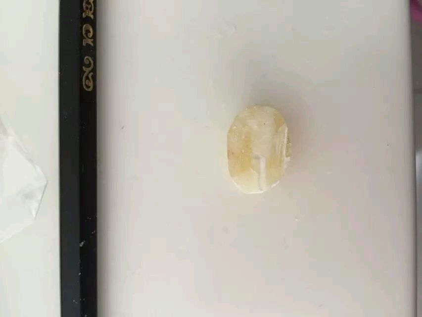 我选取的平整的一面做底,如果是2-5的原石,看看哪边比较平整可以做底,最好是比较宽的一面做底,因为蛋面有弧度,一定是底比较大的。把纸片按上面,找个笔画出一个大概的轮廓。我为了效率高一点直接上的台磨的砂轮,没有台磨的朋友就用锉或者80目的砂纸慢慢蹭也是OK的,别磨进画好的边缘就可以。