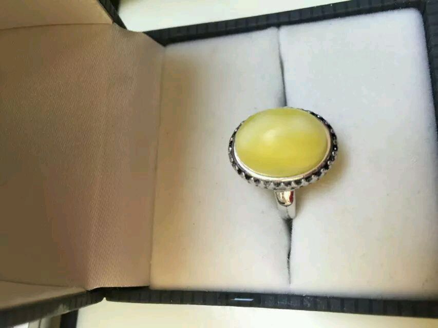 把抛光好的戒面放进去,用手稍微按个三五分钟,然后最好把它蛋面向上静置几个钟头。上图为冷光灯下照片。