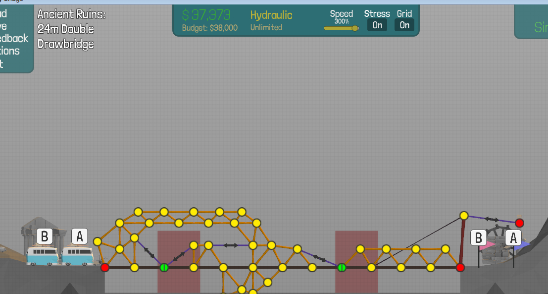 我人在外面,我可以告诉你思路,两边立钢筋拉线,用不带网点的在石头上竖一根钢筋,路用不带网点铺,前面两个上坡,后面直线,让车子飞下去