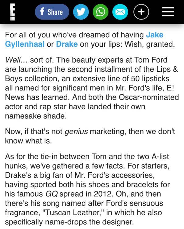 福特叔新推出的口红系列,以50个他生命中的重要人物名命