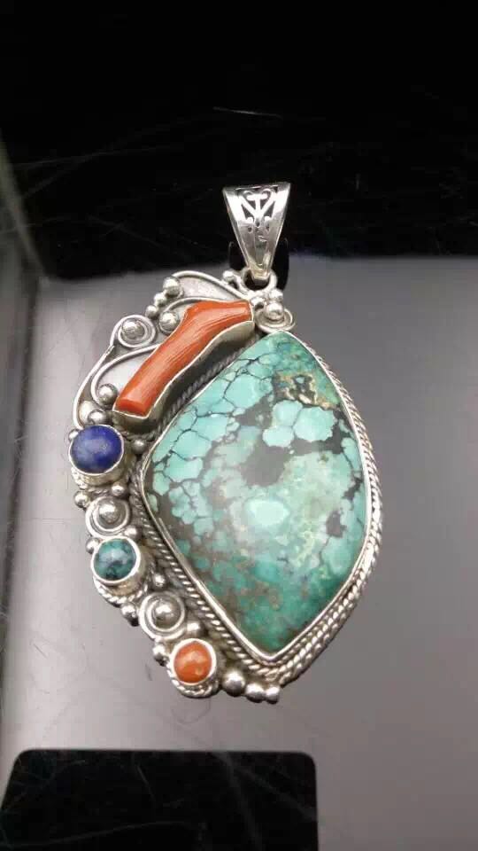 太久不做手工,ab胶水居然都找不到了,还好其他材料还有点,用朋友给磨的高瓷松石陪天然红珊瑚,珍珠,月光石,做个欧美复古小胸针,非常喜欢,带来看望大家呵呵。