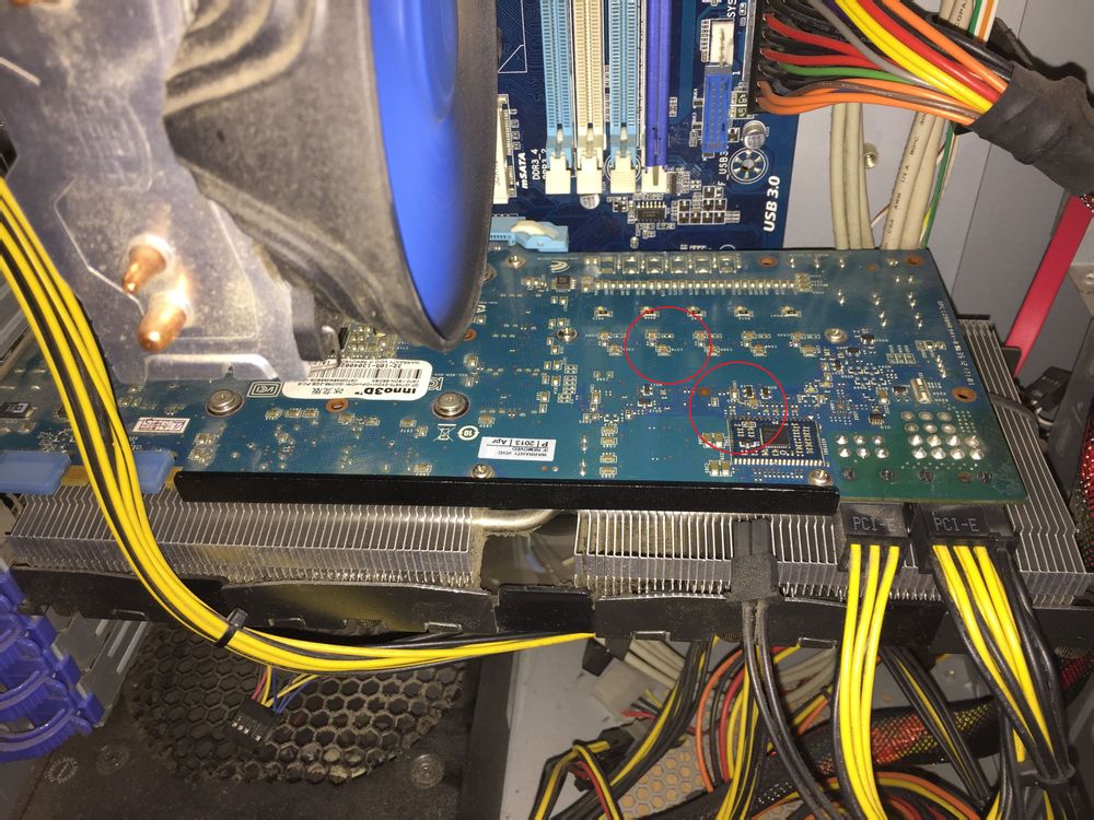 原来我刚买的7770是小强在上面拉了一泡翔,结果当场花屏,后来拆下用酒精擦干净,放了好几天重新装机正常使用。