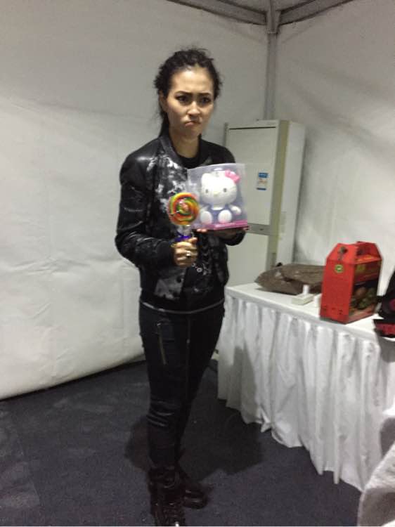 表演结束后,小伙伴们火速赶到后台面圣!果然本人还可以更美,人超级nice,她说感冒刚好,看着大家淋雨很心疼,希望大家不要生病大家一定要听夏夏的话哦。楼主不争气的发了点小烧,希望纹身好好地!