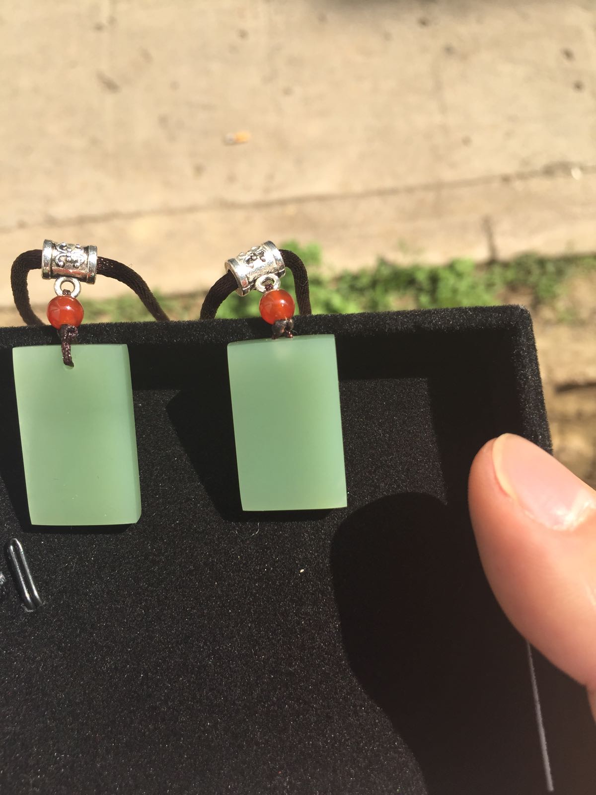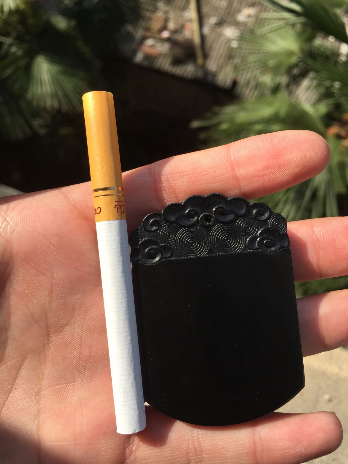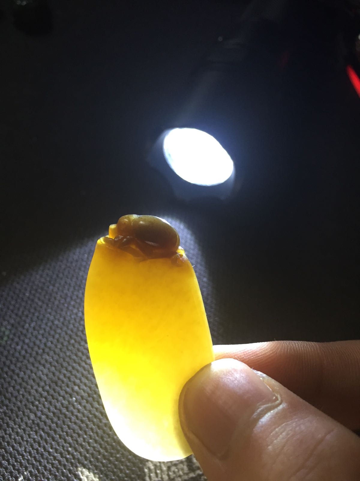 回复 一JIAN风情 :黑牌子有俩,一个祥云无事牌是黑青玉,打灯透绿光,一个关公双面工的青花墨玉,打灯透白光。