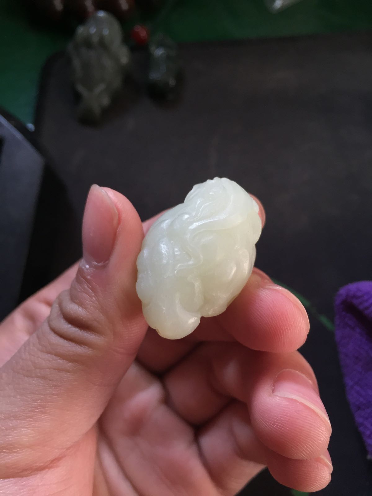 有三个俄料的,一个白玉平安牌,1600,一个俄糖富甲一方400,一个碧玉貔貅,400,这个出了。