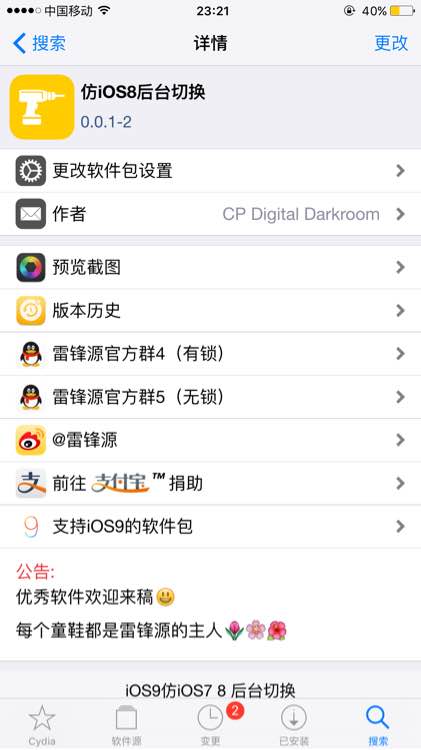 前几天升级到iOS9发现切换动画卡顿1此插件可让动画效果换回iOS8时代的卡片.