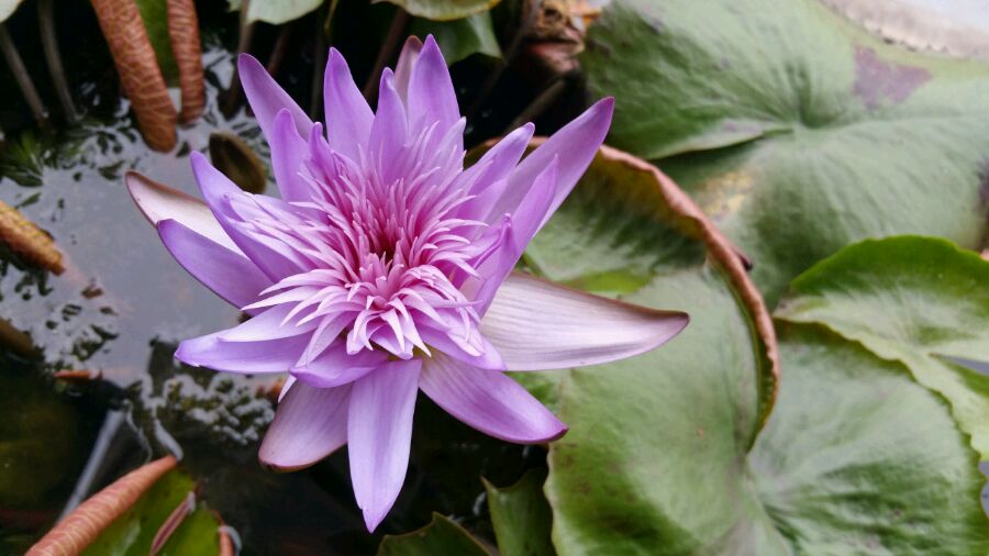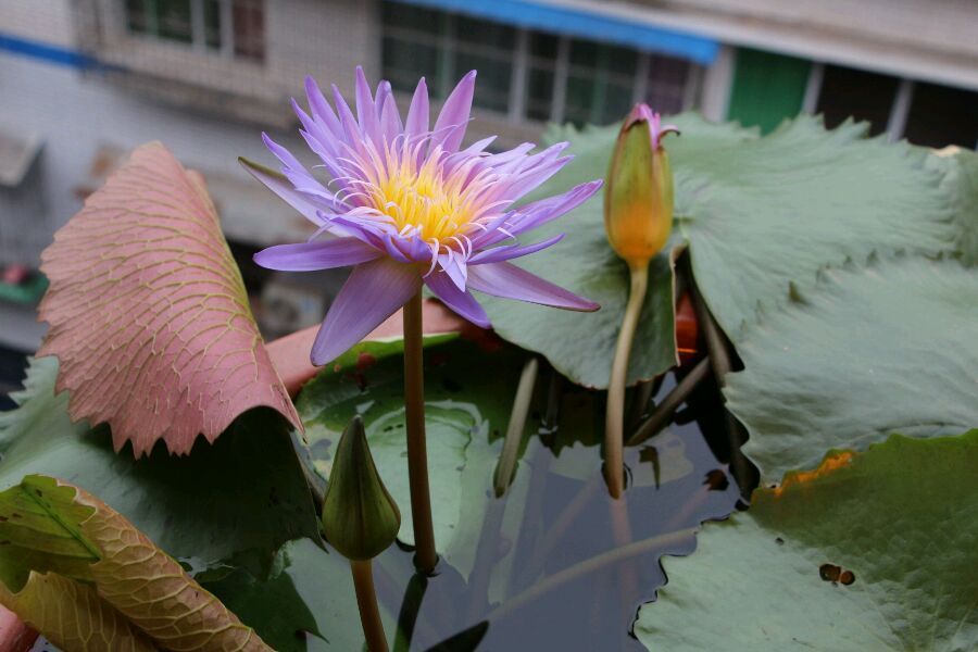 看你描述的,就知道老板忽悠你的,在国内还没几个地方睡莲能在自然环中能一年四季开花的。观音莲:佛教叫睡莲都叫观音莲。(还有种像水葫芦的,水白菜,有的也叫它观音莲,放水里就行,但它不是睡莲。)