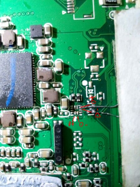 红色线那边的电压没有5V,只有电池电压而已,有些东西不能正常工作的!还有白线跟绿线你焊反了,颜色反了不要紧,但D+和D-不能焊反了!