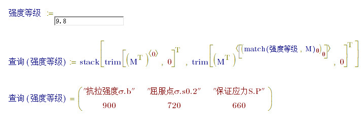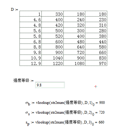 如何将图中的表格用矩阵表示出来,如只需要输入强度级别,对应的屈服点应力、最小抗拉强度和保证应力就会自动输出矩阵中的数据。或者有没有更简单的办法?