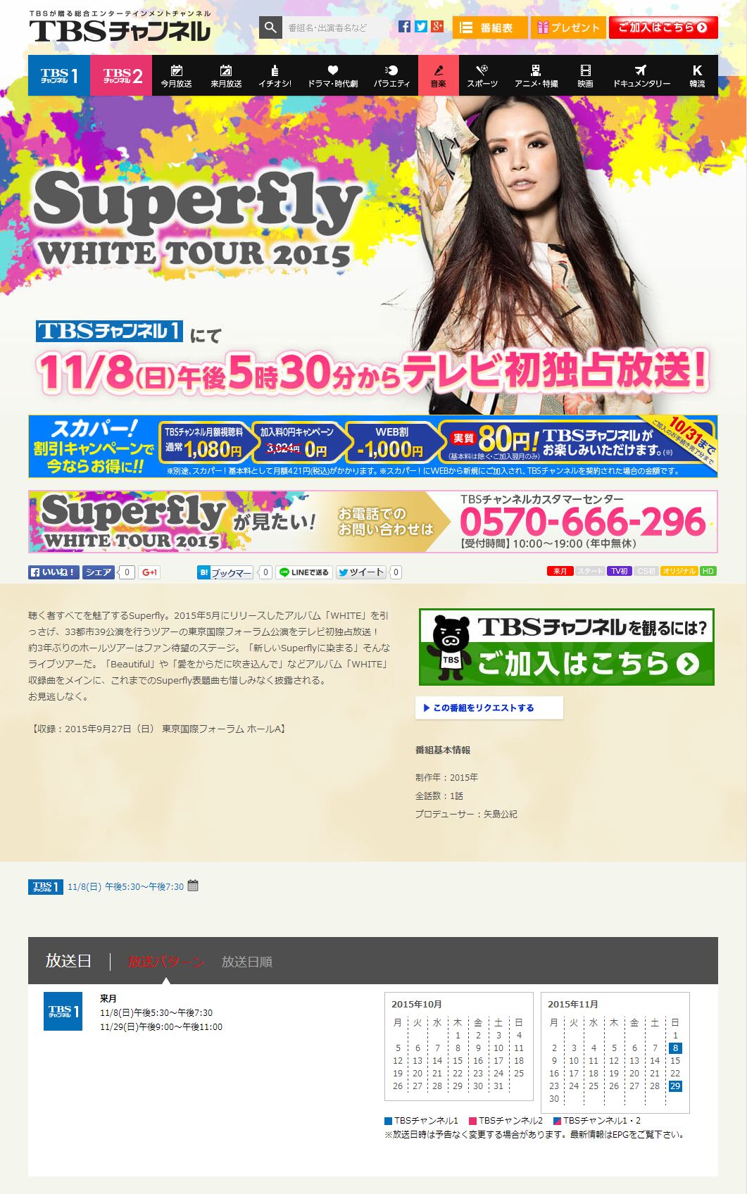 Superfly WHITE TOUR 2015 TBS1 11/8(日)午後5:30〜午後7:30 放送