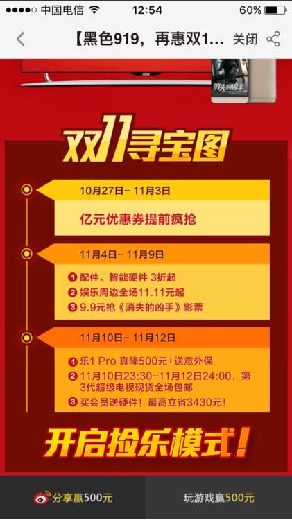 乐视商城有个双十一活动页面