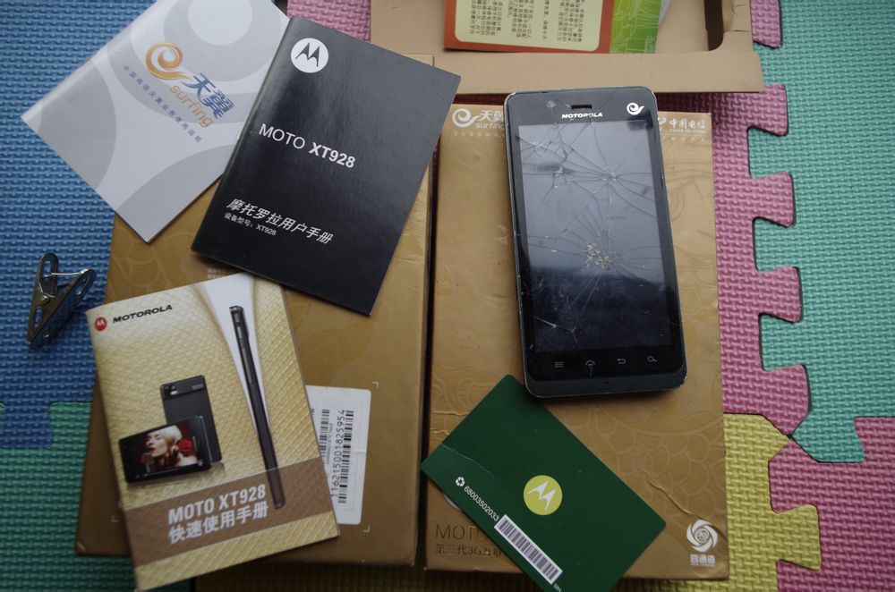 还有一部xt928 爆屏,,说明书,包装盒都在,没电池了,,30不包。。
