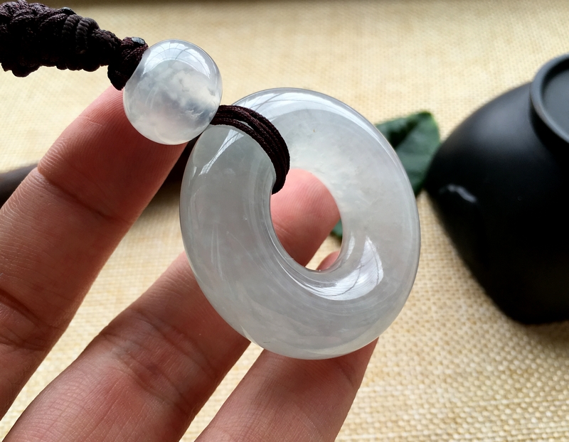 商品及瑕疵情况介绍:A货翡翠,有牛毛纹,顶珠有纹,雪花棉平安环,种老起胶,用料十足,肥嘟嘟的甜甜圈,非常惹人喜爱,上身效果极好