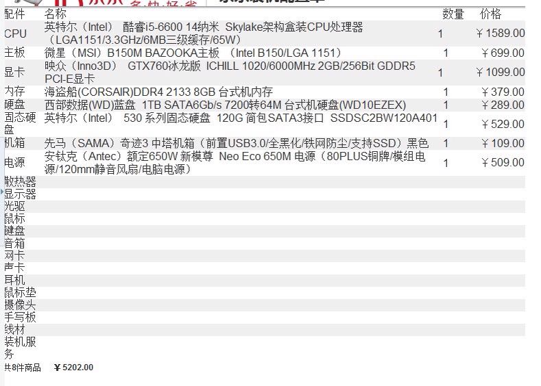没人 推荐个配置吗 不带显示器 单主机5000预算