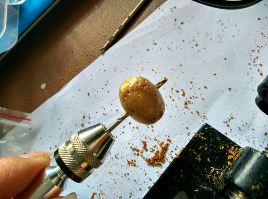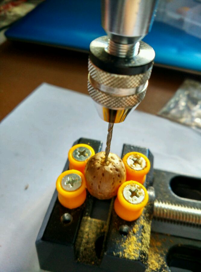 再给大家看看打孔的过程,这种树籽很容易打偏