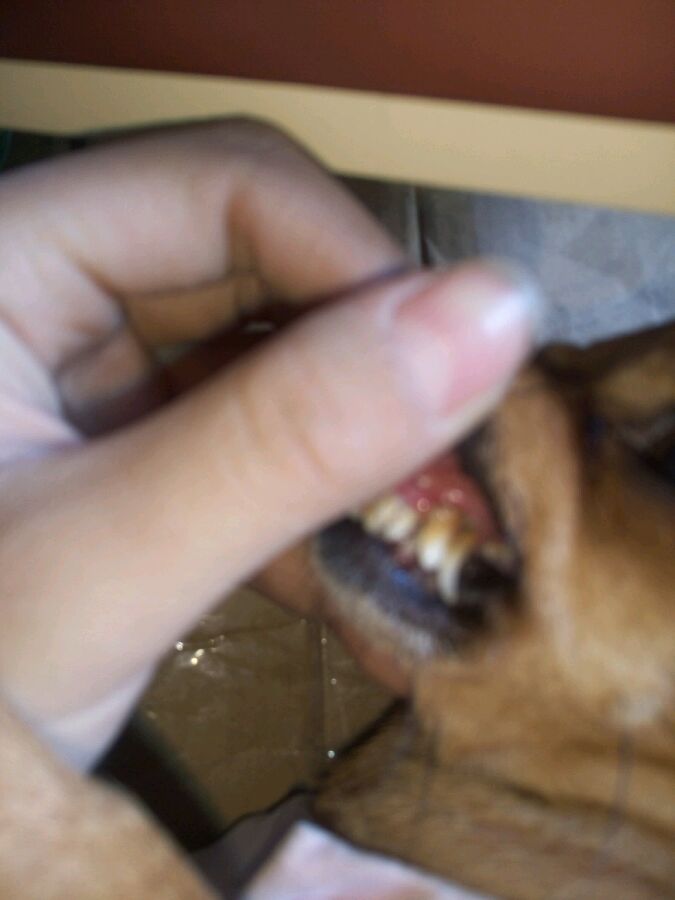 你都不给他刷牙吗,我家领养了一只被弃养的泰迪,就这样,牙掉的只剩四颗了,吃东西要靠吞。可受罪了。你最好带她去宠物医院吧