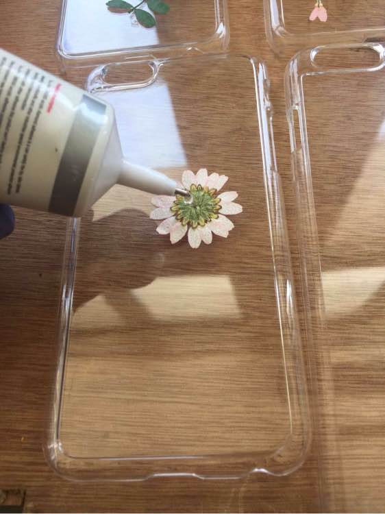 然后 用这款胶水,拿起干花,沾一点这个胶水,放在凹槽手机壳里,做你自己想做的造型