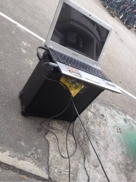 教官要求放歌,还得全操场能听清楚,打扰到学长学姐们休息还请见谅,这么大音量,坐在音箱边上调音的表示已跪,音箱太差,加上音量最大,高音偏多,底噪特大,坐了一会小心脏都受不了了