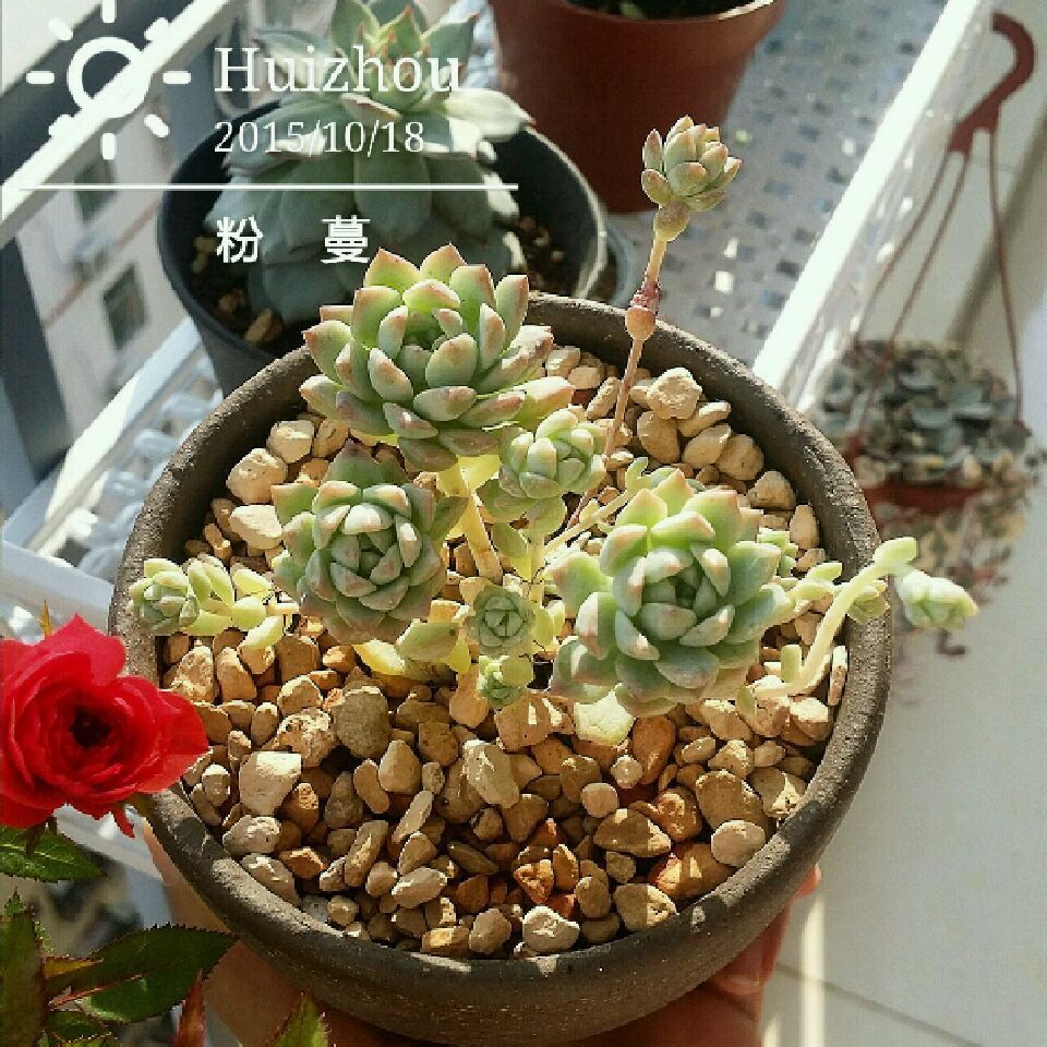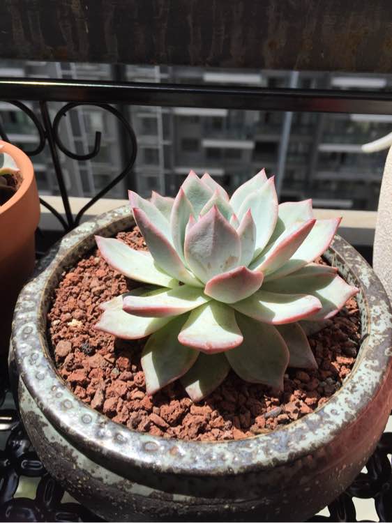这是刚来的样子,还算粉嫩,盆是我自己买的噢!100块还没有盆噢!我家雪莲都比它便宜!