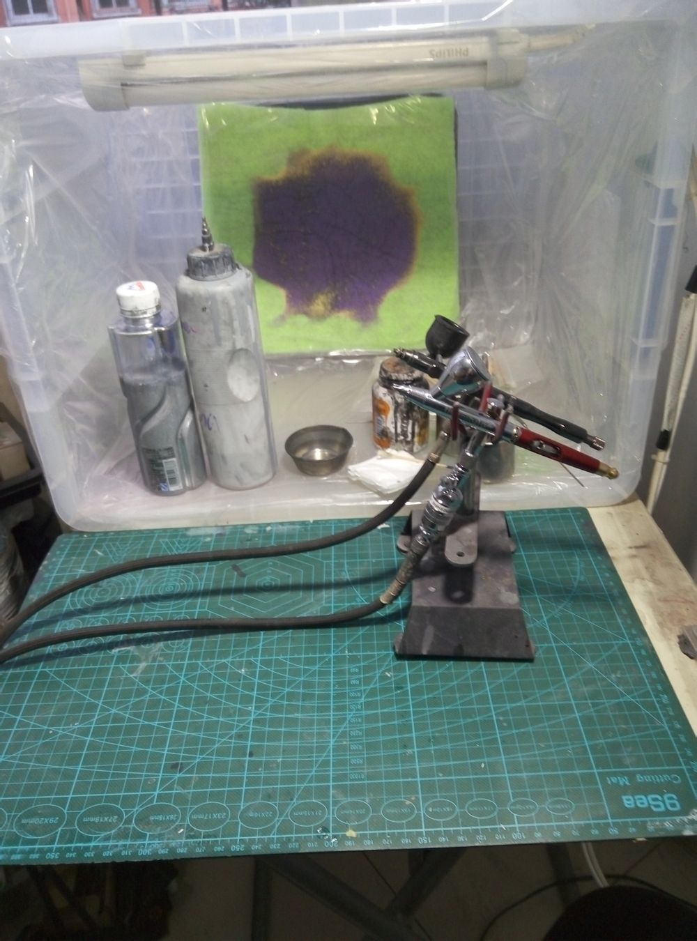 面漆的清洁一般都比较麻烦,建议大家把喝完的矿泉水瓶留下风干,调面漆时当做一次性的油漆容器,喷涂后直接扔掉,就不必洗盛漆的容器了。