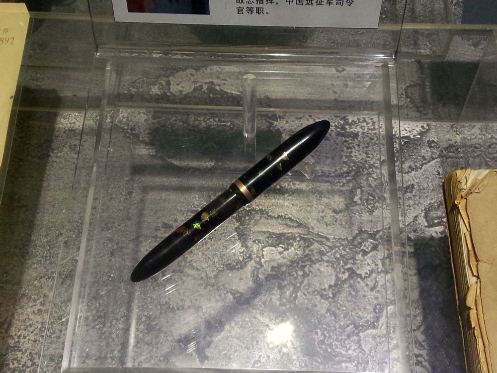 今天去了建川博物馆,在正面战场展厅看了很久,感触良多,太多物是人非之感。临近出门时看到了这个,当时也就多看了几眼但并未有太多想法。当我再参观了其他两个展厅之后,脑子里总是会想起刚才看到的这支笔。于是,果断抛下大部队,独自返回了之前的展厅, 拍下了这几张照片,也算是后辈小子对当年浴血奋战的国军将士们的一种缅怀吧。英灵不灭、浩气长存……