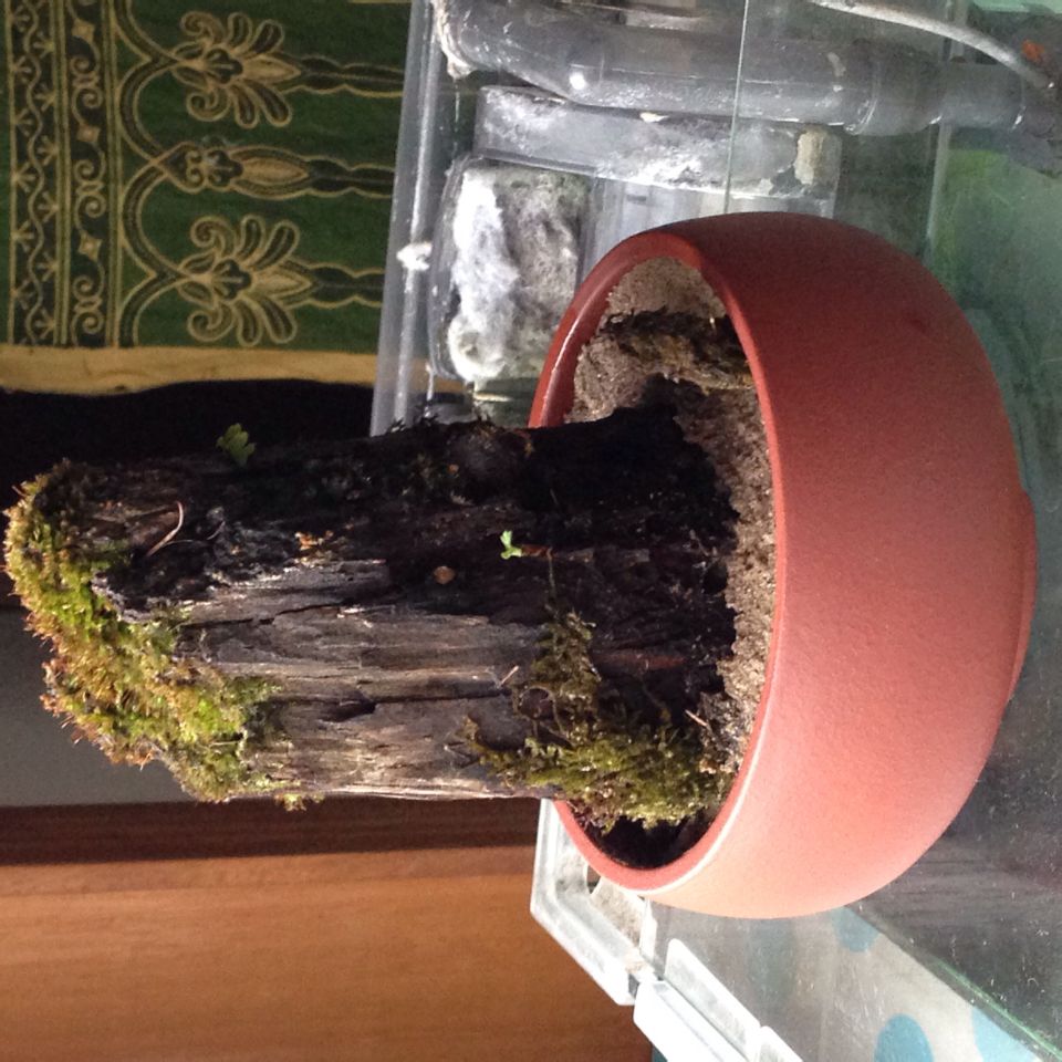 从山里挖的枯木绿苔 回家泡着下面长出个小芽 不知是什么植物