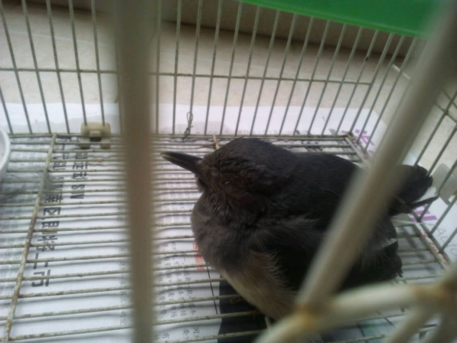 鹊鸲,补葡萄糖水喂面包虫,有点难救...