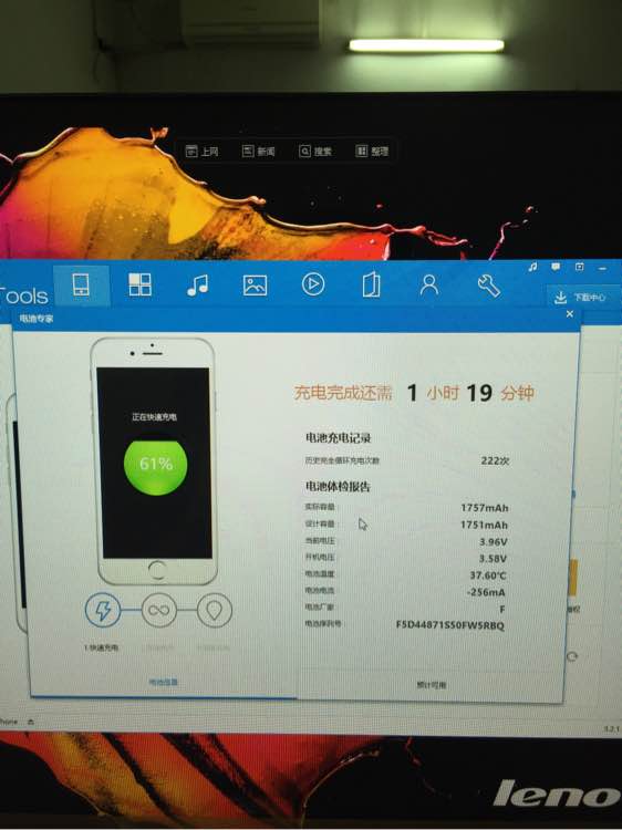 iTools是直接读取的手机内的数据信息,当然也不能排除电池使用会有一定的损耗,供参考!