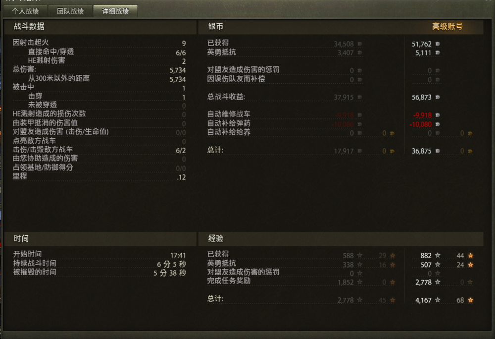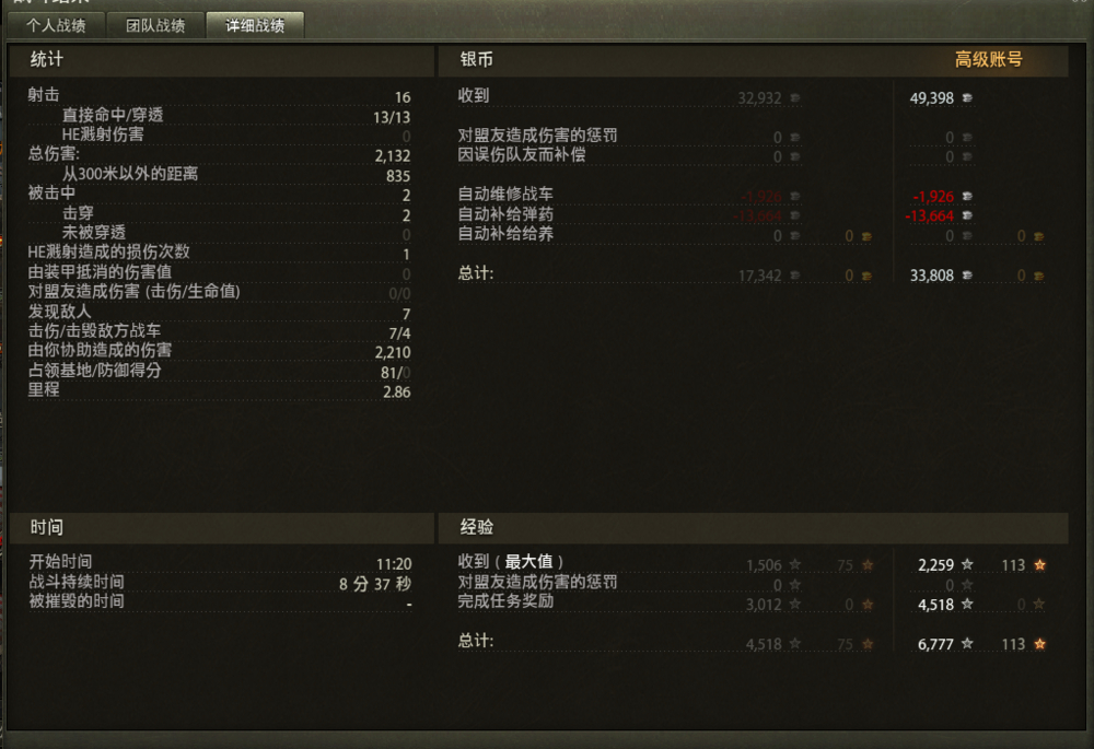 是我所有火炮的最高输出了。。然而依然没有过火炮任务12。。。要求伤害前三,要求幸存,要求至少击毁两辆,第二条件是要求胜利