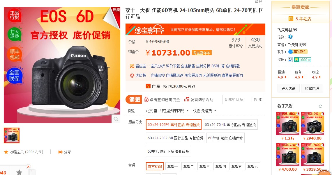 6d裸机水货7000 24 105水货3000出头 行货分别贵几百 某猫 某宁 某东 双11也比正常贵 噱头无疑