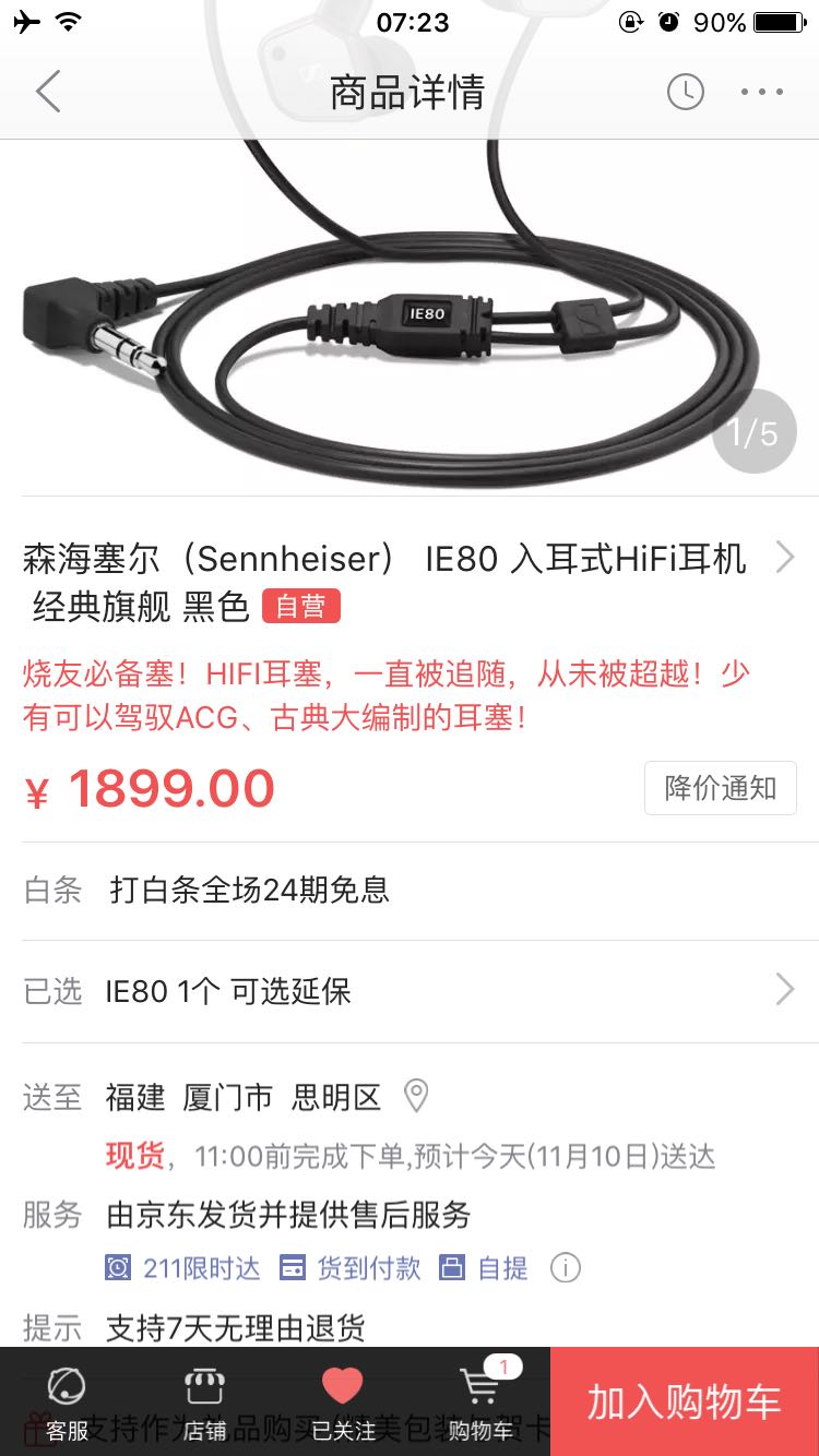 之前入了um30听人声很满意,还看中一条IE80,有优惠券的时候,不想剁手忍住没付款,今天提醒降价了,直接1899 还能减50 白条24期免费分期。想入一条和um30 互补了,一个人声一个乐器,是不是可以暂时退烧了[滑稽]。。。。。。