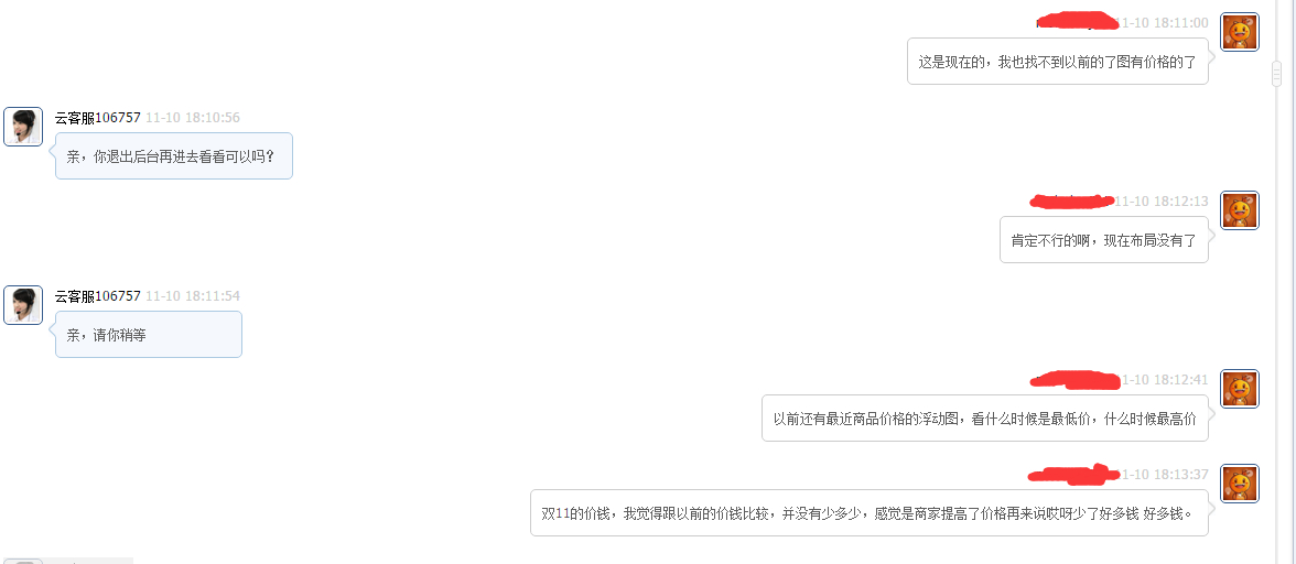 淘宝客服告知隐藏商品价格的浮动曲线图,是为了更好的进行双11。