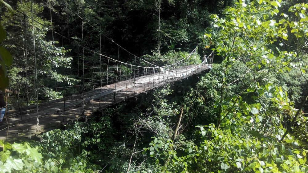 快到背崩的时候会经过一个门巴大哥开的小卖部,也不知道是这门巴大哥通知的还是怎么回事,背崩的两家客栈都会来接客,从小卖部走出没多远就碰到那个开杨老三的东北人,反正是两家都来了,这种事情是我比较反感的,搞得整个队伍都很尴尬,一语不发,给人一种就是开黑店的感觉,就这样默默的走了几公里终于到了解放桥,要说这解放桥吧也真是坑了,过个桥真是麻烦,要是真的想干点什么的人一定要从你桥上过吗?德兴可以走,直接从318也可以走,我现在都一直没搞懂这个兵站存在的意义。