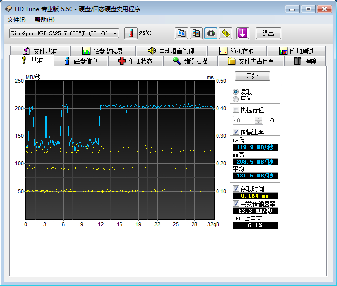 70元包邮的32g固态,这个成绩是不是挺垃圾啊?比机械的快不了多少吧?跑不了AS那个测试软件,不知道为啥,使用倒是没问题。。。。。。