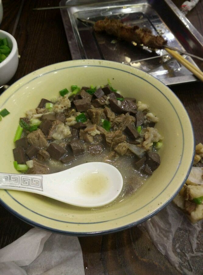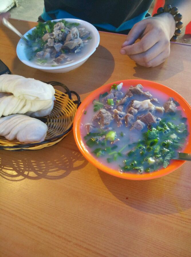 我大本溪的羊汤,三伏天喝最好,现杀的羊,肥肉并内脏等放在柴灶锅里炖一下午,羊肉做熟切碎,羊汤羊血羊杂羊肉,自己根据口味添加盐、味精、白胡椒粉,葱花,香菜,白醋在配上花卷,痛痛快快的喝它三大碗,汗流的酣畅淋漓,去湿气,消夏暑,美哉!