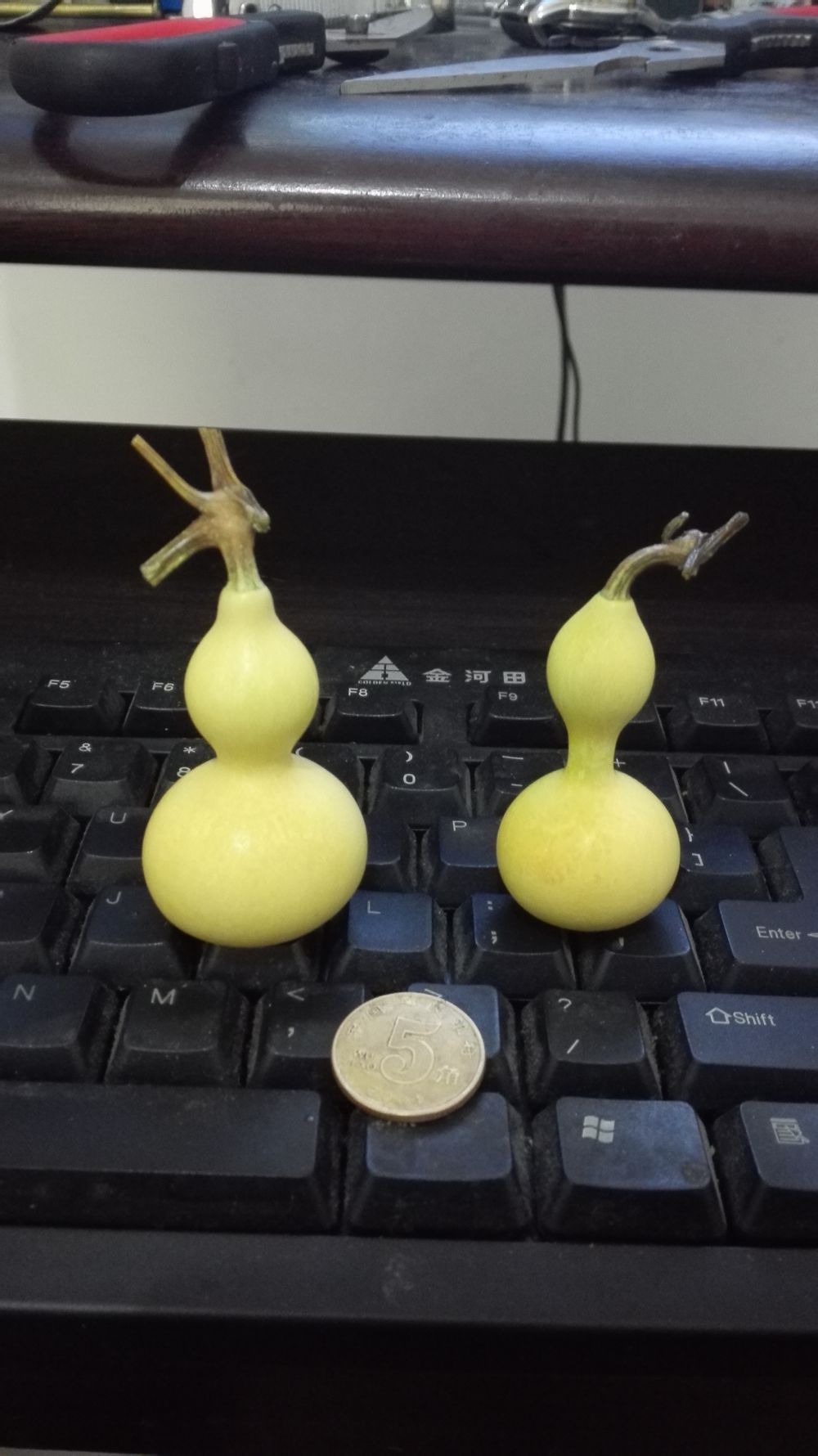 前年在路边买了一个,没有龙头的,破开取了种子,今年收货了,挑了几个好的,打皮,晾干,开始上手,期待吧。。。。。。