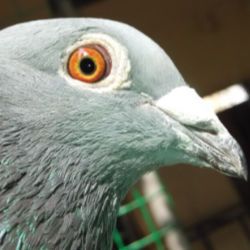 以前拍的照片,那时候正退毛,现在退完了,有不少老鸽子是汪顺兴的原棚鸟,毛腿是汪老的1500冠军陪2500冠军的近亲鸽子,