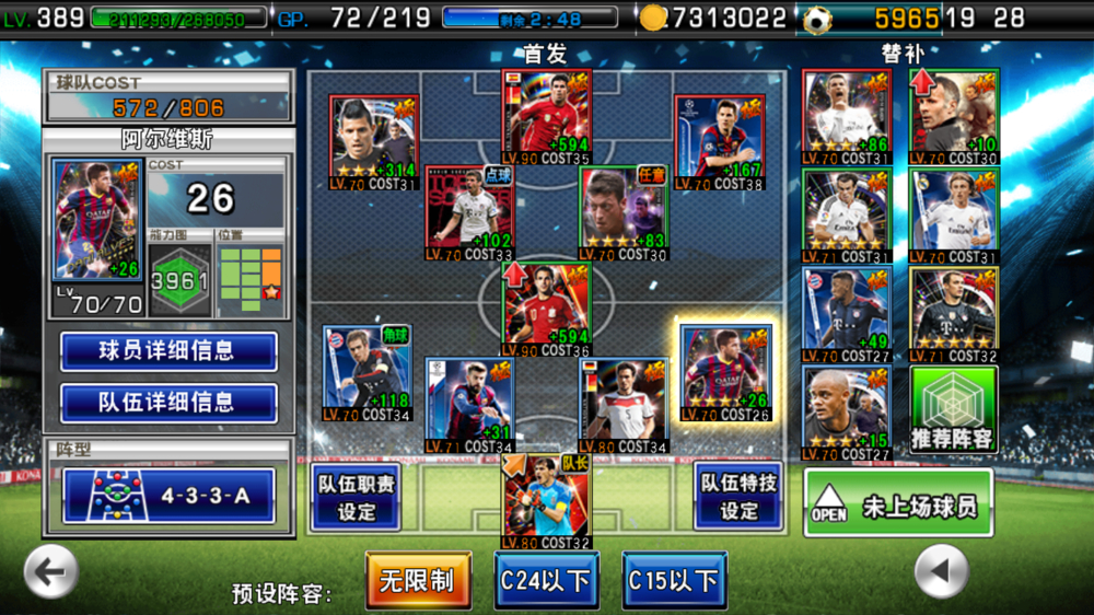 原来的版本里一直是433B或者A在玩,闲来无聊楼主选了以上3个好友433B的玩家各测试了10把,结果在用343B阵型的时候在30把里居然赢了25把输了一把平了4把,在用433A的时候输了19把平了5把只赢了可怜的6把,目前友谊赛因该没有BUG,不然2种阵型相同的球员却踢出如此大差距的结果因该不太可能,观察了那么多场发现433有个非常大的问题,边后卫在本方拿球进攻的时候经常不在位置上甚至跑到边锋前面去要球,结果一被断球还要从对面半场开始回追,基本带加速的边锋就追不上了,被传中后基本丢球,场场如此,而343B里后腰基本保得住位置所以就算被正面突破回追反抢还有很大空间,抛开这个游戏边后卫顶级较少反而进攻边前卫边锋溢出导致大神都在343C外,是不是因该合理一下边后卫这个角色了?经常进攻跑到非常不合理的位置。。真是无语,估计在发展下可能以后只有在C24和C14的天梯才看得到433了,以下附上楼主测试阵容