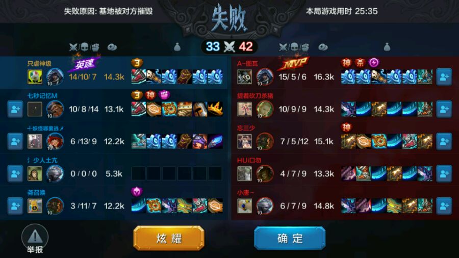 天舞全程挂机,不知道什么心态,但是给力的队友没有抱怨,努力推塔打团,我偷了对方水晶大概剩下4分之1血以后被针对了,虽然输了但是没什么好抱怨的