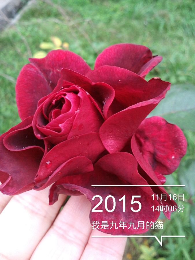 这款花瓣红得发黑,有绒质感。我推测是古月季紫香绒。这气质,这风姿,这品相,一点不输于花店玫瑰卡罗拉。