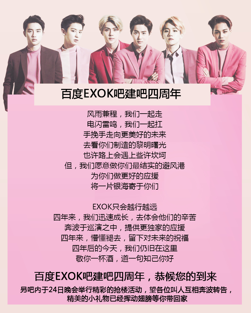 百度EXOK吧全体EXO-L诚邀贵吧共同关注◆11.24◆百度EXOK吧建吧四周年