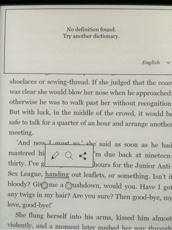 看英文书屏幕下方显示的章节页数,对我来说简直太方便了,看英文书按章节看比按页数看有动力得多啊,估计我会自己日淘glo hd了,nook5屏幕太灰,看了国外nook5和kv的测评视频,nook5屏幕确实灰,虽然kv也不白,然后中间glo hd出现了一秒,那屏幕,对比起来简直白得多。kv2也不等了,感觉屏幕也不会太有革命性的进步,而且到时候能海淘到估计要12月份了,到手价格估计要1300了,glo hd到手价650,一半的价格