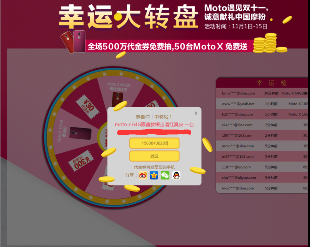 晒一晒我在moto幸运大转盘抽奖中的64G酒红皮X+1
