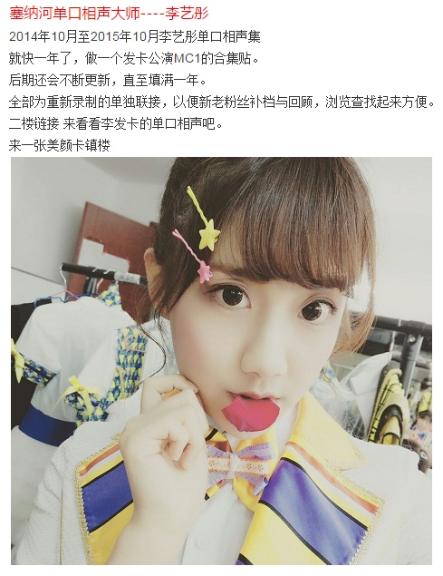 此帖为李艺彤公演MC1集合更新贴