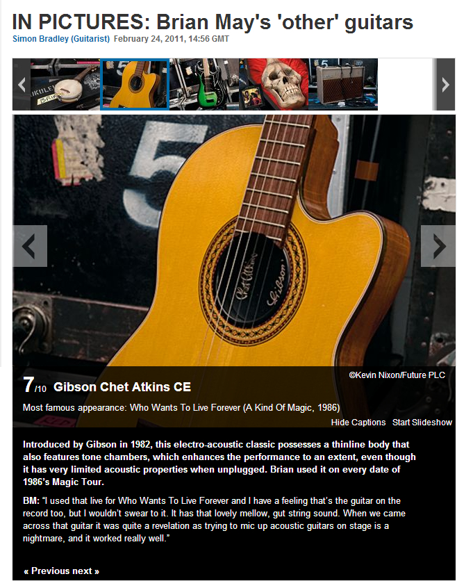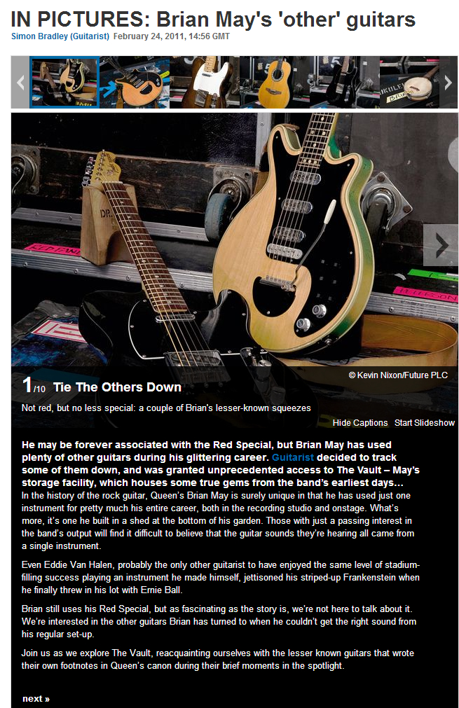 依据Queen现场演场会纪录,Brian 1982年在纽泽西巡演时,把一把替代吉他摔成三截2006年才被Suffolk的弦乐器师傅Andrew Guyton修复.