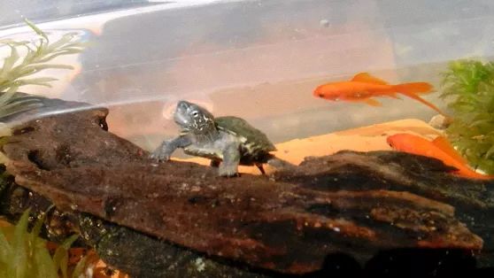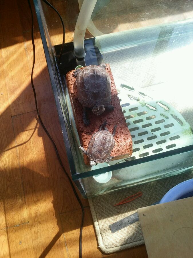 本人养龟的。冬眠了,所以缸闲下来了,昨天买了几条鱼,我不认识啥品种,应该是很一般的金鱼,如果我能养活了,明年就给它们再做个大缸。