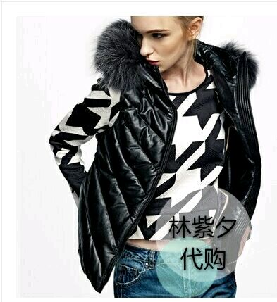 有一款墨绿色长款羽绒服,袖子是呢子拼接的,有点灯笼款,挺喜欢的,求货号