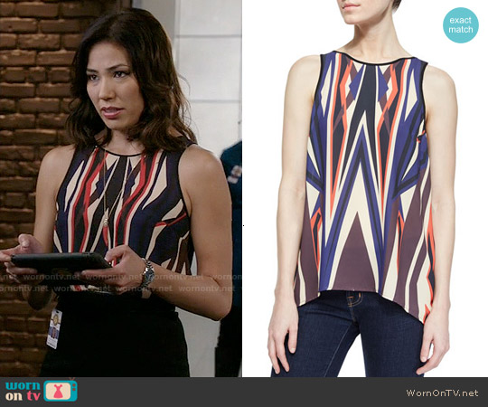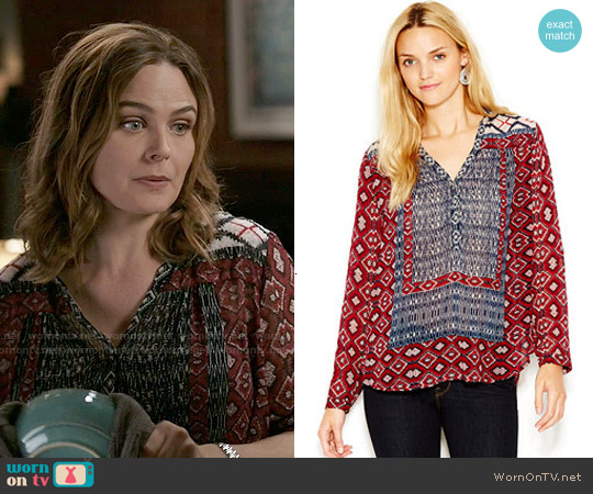 ANGELA’S RED AND NAVY GEOMETRIC PRINT TOP ON BONES