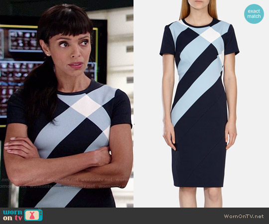 BRENNAN’S BLUE MIXED-PRINT DRESS ON BONES