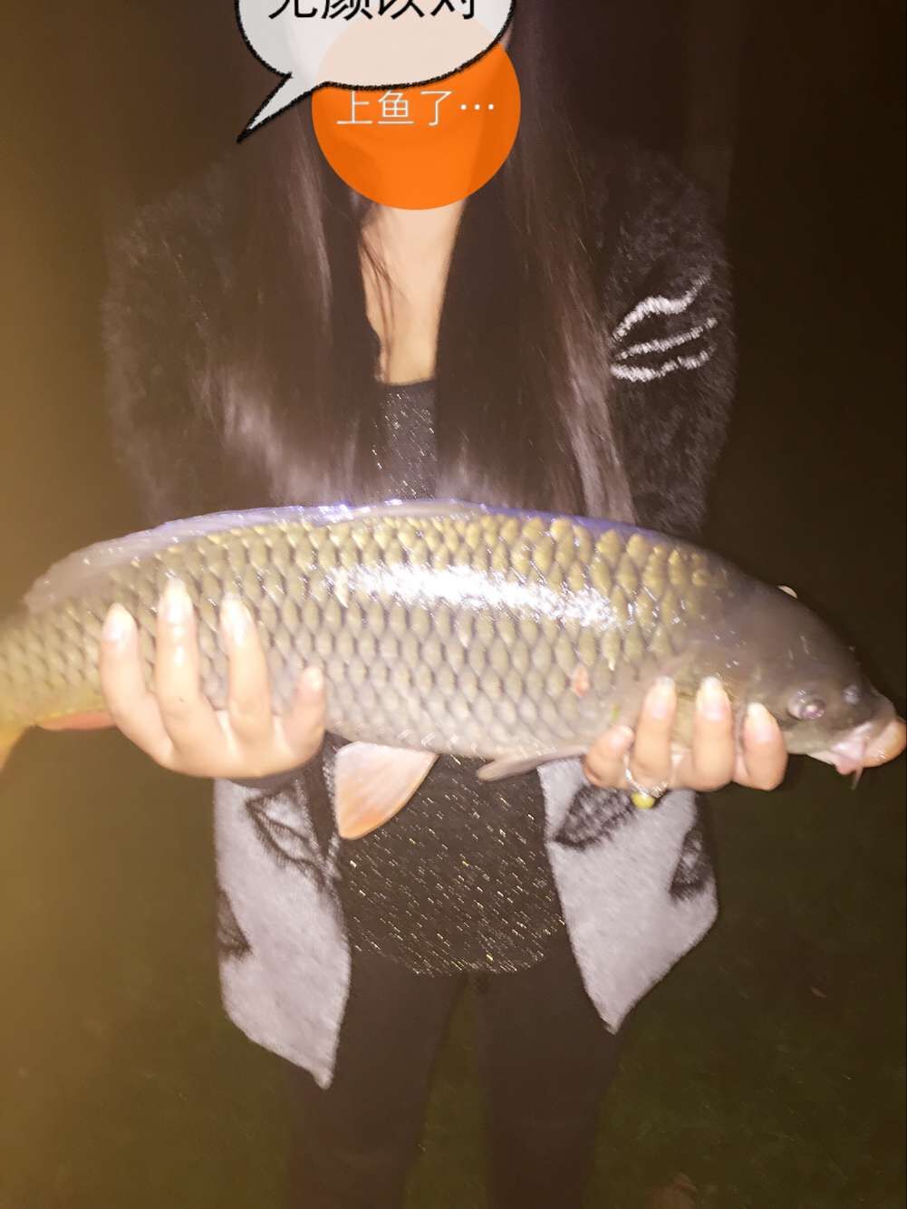 这个鱼是我今年学习钓鱼3个多月里面钓的最大一条,在环城水系钓的,当时一晚上没口,就要回家的时候一个小沌口,当时激动的心都要跳出来来了,中鱼后我让我老公帮我超鱼,被他三下两下超起来了!